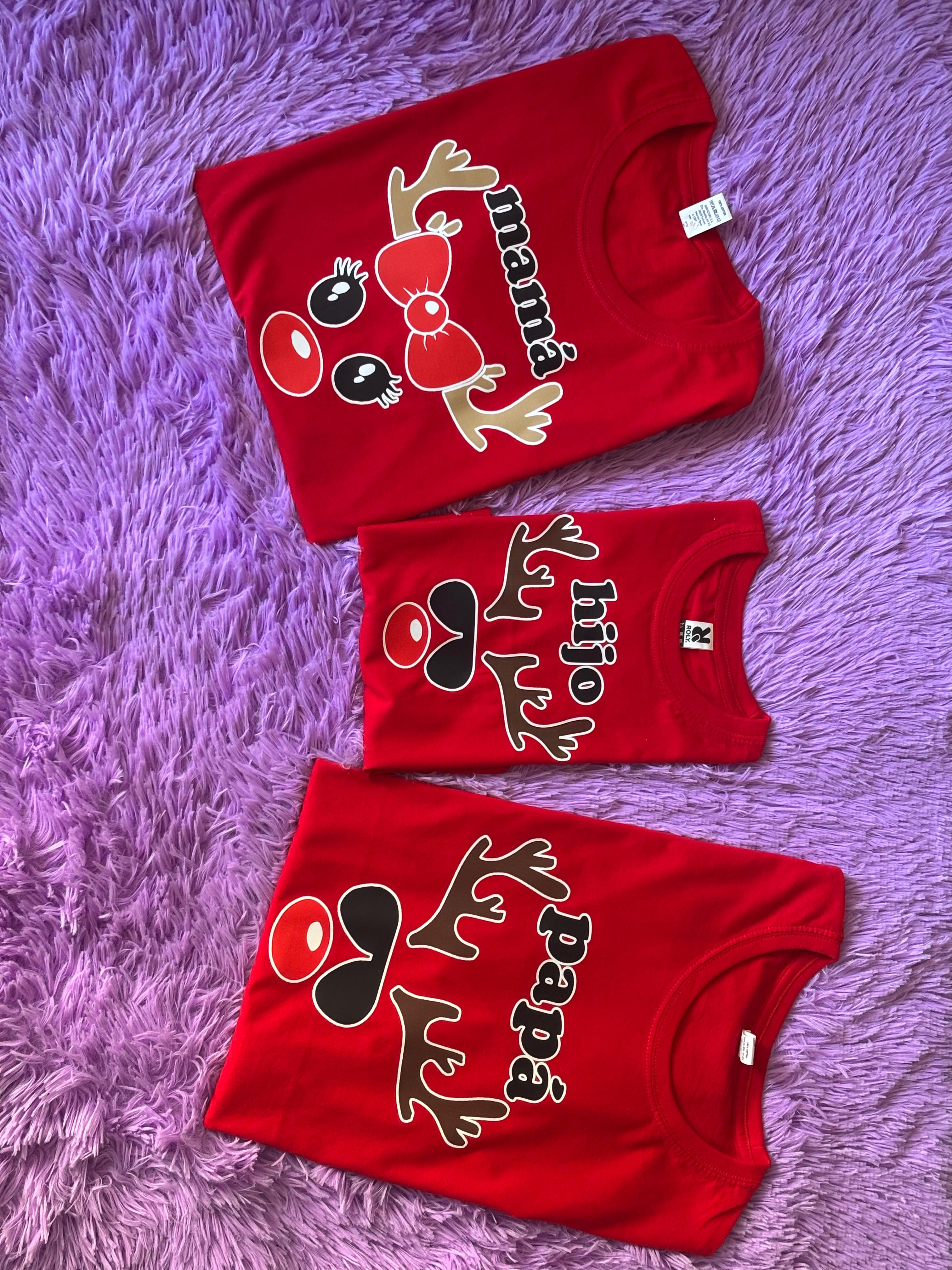 Outfit Familiar de Navidad - Poleras Navideñas Familiar con Estampado de Renos Pack